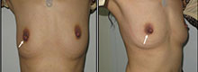 Photographs (A and B) 2 years after fibroadenoma removal. (C and D) photographs 6 months after breast lobe removal. Patient photographs (E and F) 6 months after fibroadenoma removal.