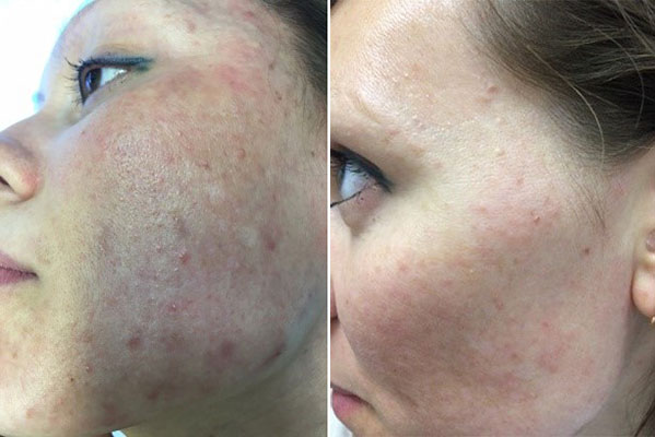 Заметное и быстрое улучшение без применения каких либо лекарственных препаратов. Ведь мы знаем, что, большинство лекарств применяемых для лечения Акне дают медленный эффект, сухость кожи и их применение ограниченно по времени. Со слов пациентки «приятно, что после лечения кожа не сухая, не натянутая, а естественная“